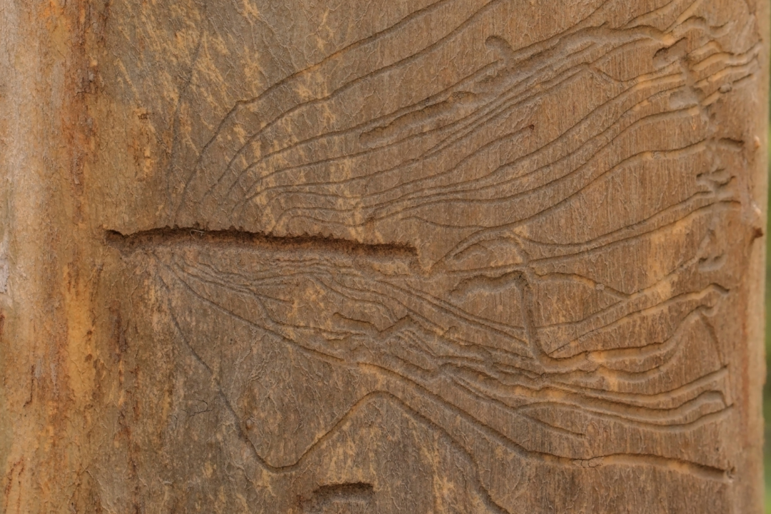 - Trous dans le bois : Témoignent de la sortie des insectes adultes.